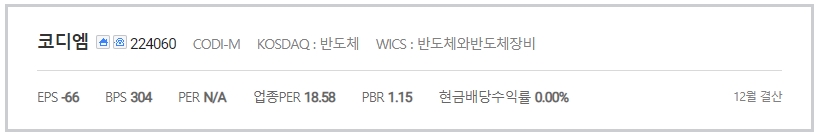 코디엠은 1999년에 설립했으며, 2015년 유가증권 시장인 코스닥에 상장한 중소기업입니다. 코디엠은 반도체 장비, LCD 장비 및 유기발광다이오드 장비 제조·판매업체로 삼성전자의 자회사인 세메스와 삼성디스플레이에 판매하고 있습니다.