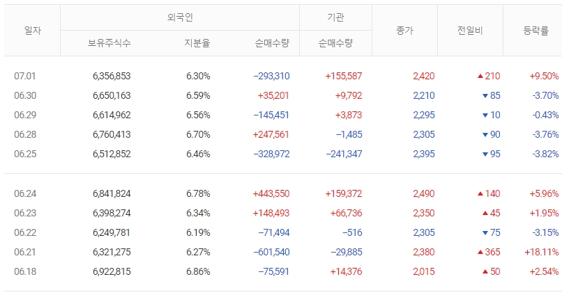 한편 기관은 이 종목에 대해서 최근 3일 연속 16.9만주 순매수를 하고 있고 더욱이 전일 기관이 대량 순매수를 하고 있어 투자자들의 관심이 집중되고 있습니다.