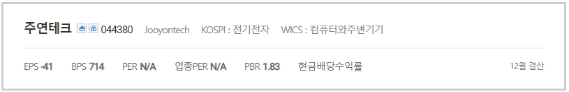 주연테크는 지속적으로 마이너스를 기록하다가 점차 회복을 해나가는 모습입니다. 주요매출구성은 PC부문이 거의 전부를 차지하고 있습니다.