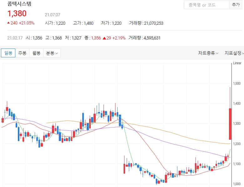 전날 콤텍시스템은 유상증자 1차 발행가액이 보통주 1주당 840원으로 결정됐다고 공시했습니다. 전날 공시로 콤텍시스템이 가파른 상승세를 보이고 있습니다. 확정발행가액은 오는 8월9일 확정될 예정입니다.