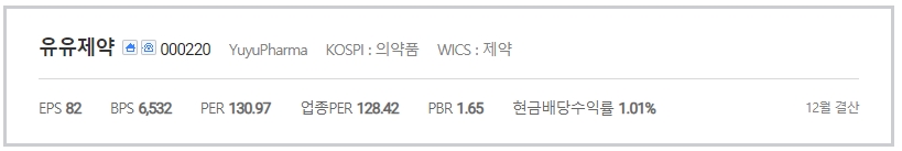 1962년에는 유판씨를, 1965년에는 국내 최초 연질캅셀 종합영양제인 비나폴로를 개발하였으며, 1975년에는 기업공개와 주식상장을 하였습니다. 유유제약 시가총액은 1874억원, 시총순위는 코스피 651위다. 액면가는 1주당 1000원입니다.