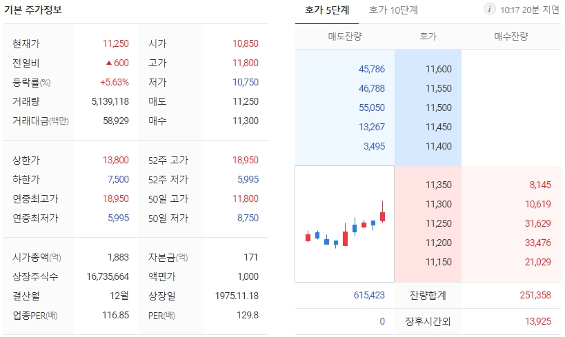 유유제약은 7일 오전 9시 18분 현재 전일 거래량의 203.7% 수준으로 거래량이 크게 증가하며, 전날보다 9.86% 오른 1만 1700원에 거래되고 있습니다.
