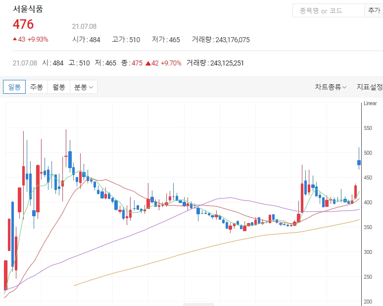 서울식품 주가가 상승세입니다. 8일 한국거래소에 따르면 오전 9시 6분 기준 서울식품은 전일대비 8.31%(36원) 상승한 469원에 거래되고 있습니다. 오늘은 급상승중인 서울식품 주가 전망에 대해 알아보겠습니다.