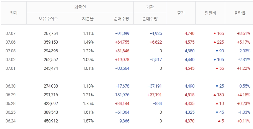 더욱이 전일 외국인이 대량 순매도를 하고 있어 투자자들의 관심이 집중되고 있습니다.