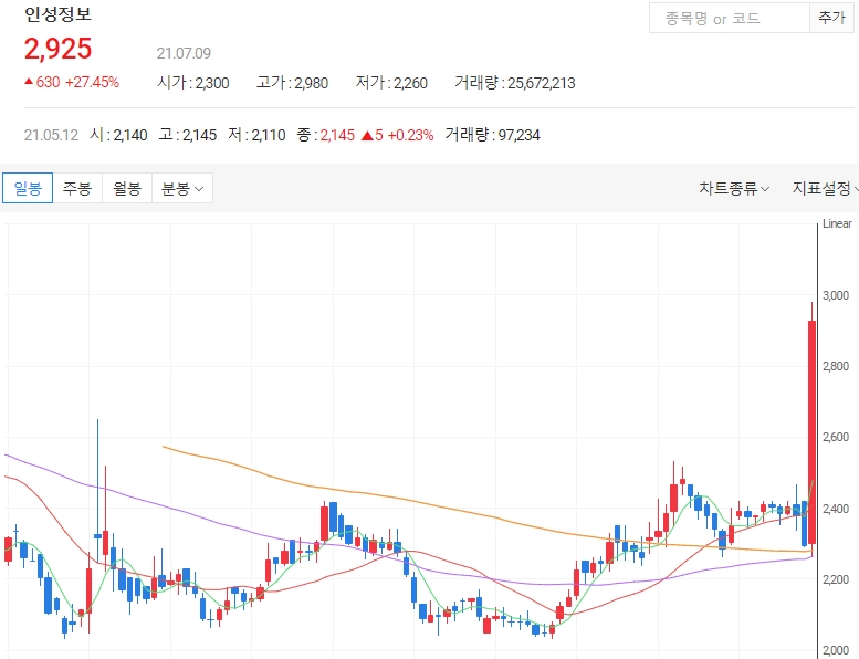인성정보는 비대면 관련주로 오늘 강세는 신종 코로나바이러스 감염증(코로나19)가 4차 대유행에 들어서면서 비대면 관련 사업이 부각되는 것으로 풀이됩니다.