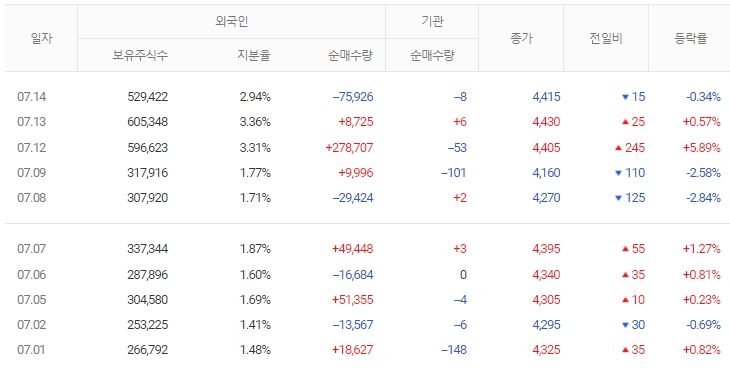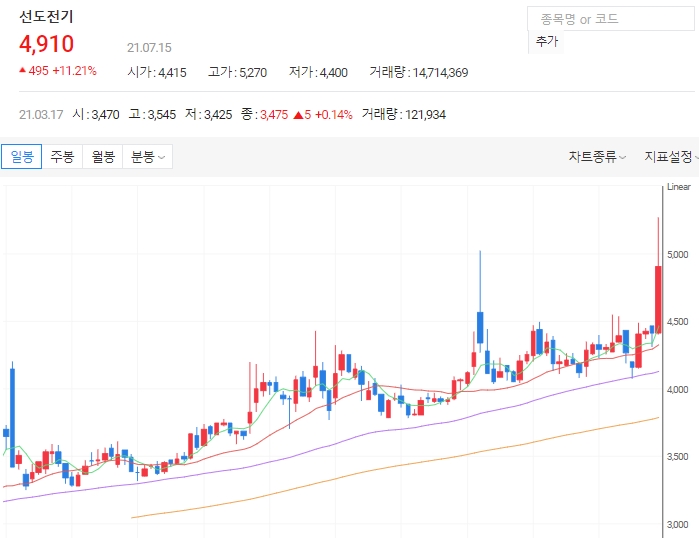 더욱이 전일 외국인이 대량 순매도를 하고 있어 투자자들의 관심이 집중되고 있습니다. 선도전기는 12일과 13일 6% 미만의 상승폭을 보이다 14일 약보합 마감했습니다.