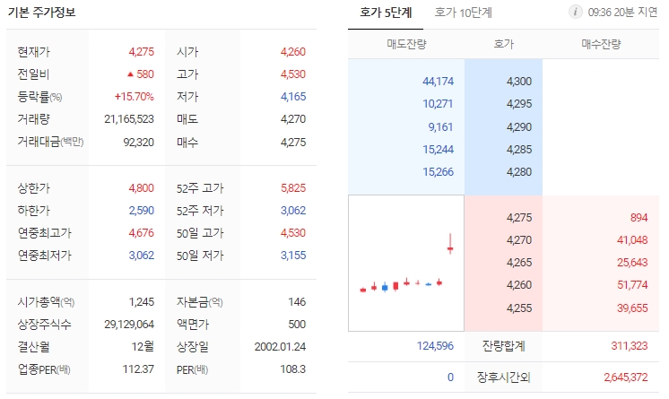 16일 오전 9시 3분 기준 제일바이오는 16.24% 오른 4295원에, 거래되고 있습니다. 이날 거래량은 전일 대비 256.7% 급증하면서 최근 5거래일 거래량의 최고치를 넘어섰습니다.