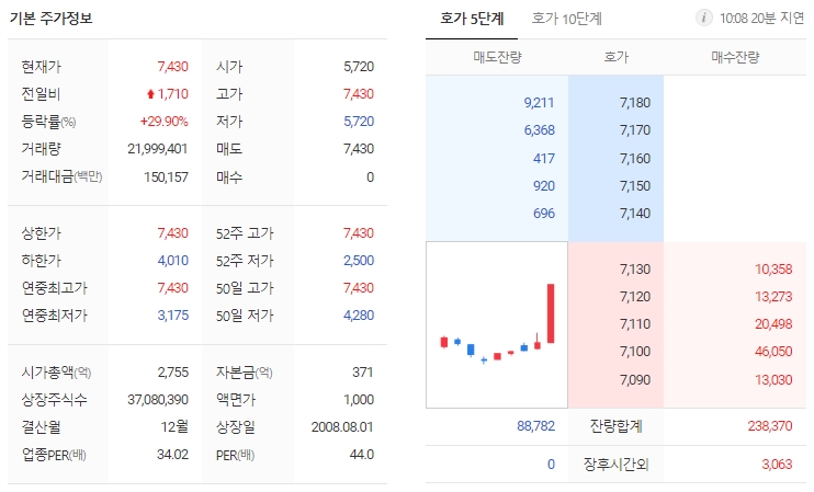 일진전기 주가가 상승세를 보이고 있습니다. 16일 오전 10시 5분 기준 일진전기는 전일대비 25% 7150원에 거래되고 있습니다ㅣ. 오늘은 일진전기 주가 전망에 대해 알아보겠습니다.