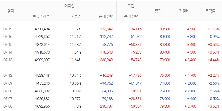 20일 오전 11시 26분 현재 전날보다 5.81% 오른 8만 5600원에 거래되고 있으며 이날 거래량이 전일 대비 202.0% 급증하면서 주가도 동반 상승하고 있습니다.