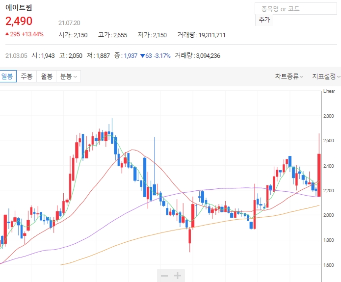 에이트원 주가가 상승세입니다. 에이트원 주가는 20일 오전 11시 55분 기준 전일대비 15.03%(330원) 상승한 2,525원에 거래되고 있습니다. 오늘은 에이트원 주가 전망에 대해 알아보겠습니다.
