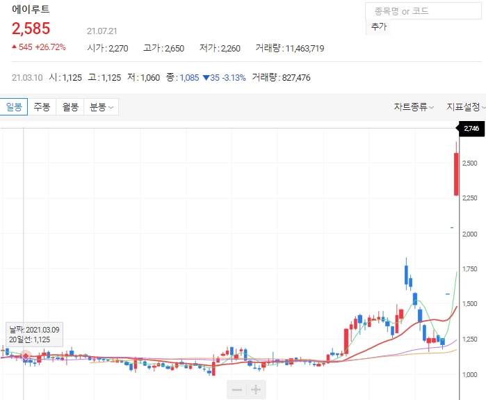 이번 에이루트의 급상승은 무상증자 이슈로 인해 급등을 한 상태이기에 현 구간 신규매수 타이밍은 아닙니다. 이틀간의 상한가와 계속되는 상승세로 네이버증권 종목토론실에서는 한 투자자는 "오하임, 아이엔리랑 완전 판박이"라면서 "세력들 상에 엄청 팔았다"면서 주가조작 의혹이 제기되기도 했습니다.