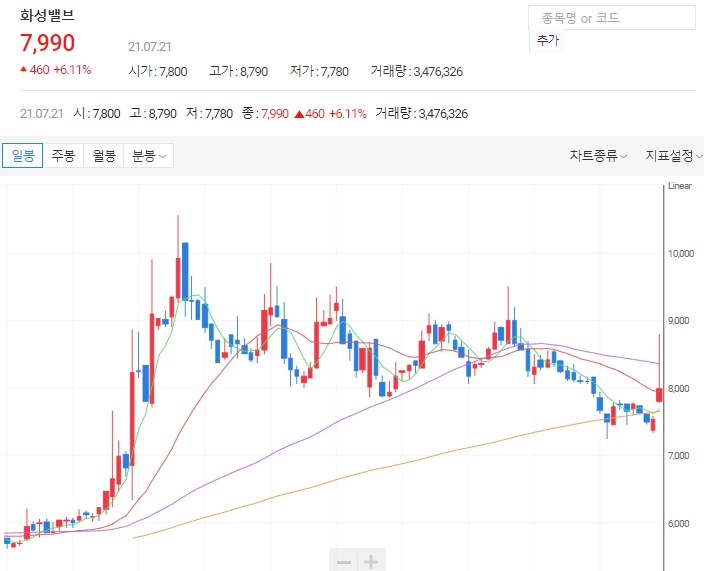화성밸브 주가가 가파른 상승세를 보이고 있습니다. 화성밸비 주가는 전일 대비 12.62% 오른 8480원으로 갭상승 하고 있습니다. 오늘은 화성밸브 주가 전망에 대해 알아보겠습니다.