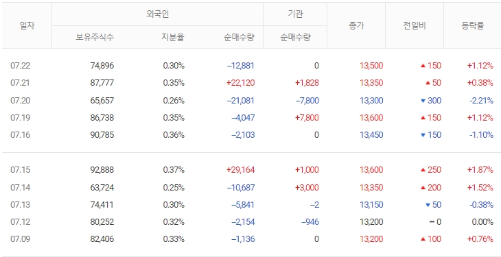 23일 오전 9시 40분 현재 전날보다 20.74% 오른 1만 6400원에 거래되고 있습니다. 이날 거래량은 전일 대비 204.8% 급증하면서 최근 5거래일 거래량의 최고치를 넘어섰습니다. 거래원 동향은 미래에셋, 삼성증권, NH투자 등이 매수 상위 목록에 나타나고 있습니다.