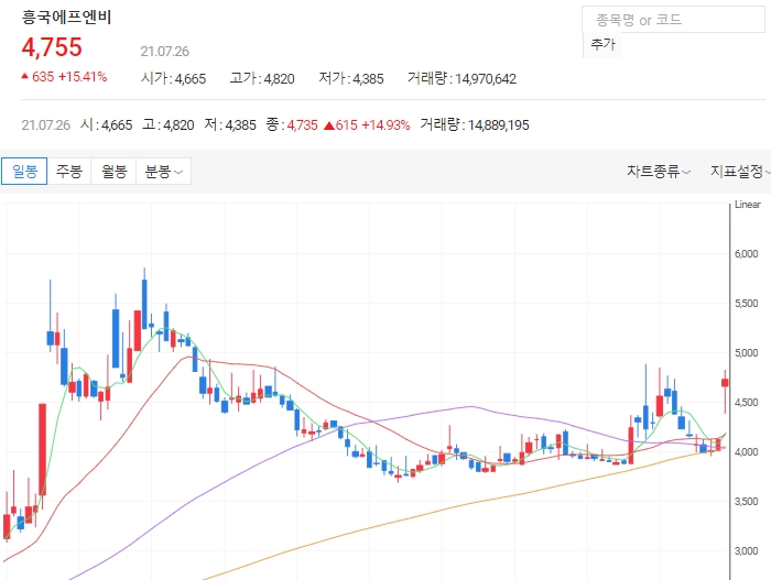 식음료 ODM 제조업체인 흥국에프엔비 주가가 강세를 보이고 있습니다. 26일 오전 9시 6분 현재 전날보다 12.62% 오른 4640원에 거래되고 있습니다. 오늘은 흥국에프엔비 주가 전망에 대해 알아보겠습니다.