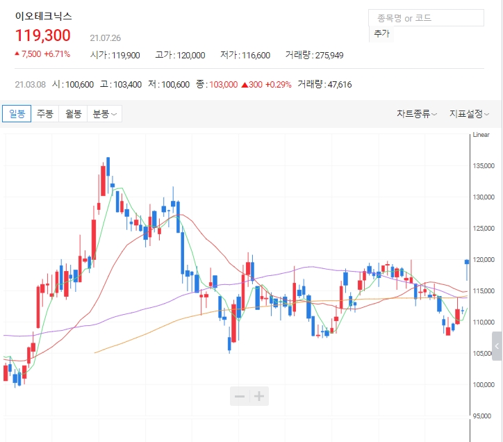 반도체 레이저마커, 레이저응용기기 제조업체인 이오테크닉스는 26일 오전 9시 42분 현재 전날보다 6.26% 오른 11만 8800원에 거래되고 있습니다. 오늘은 반도체장비 관련주인 이오테크닉스 주가 전망에 대해 알아보겠습니다.