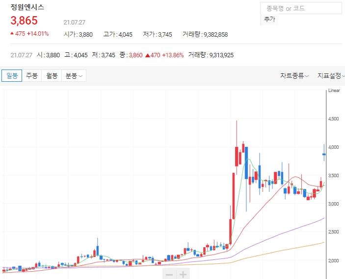 정원엔시스 주가가 갑자기 상승하여 이목을 끌고 있다. 시스템통합서비스 제공기업인 정원엔시스는 27일 오전 9시 21분 현재 전날보다 16.81% 오른 3960원에 거래되고 있다.