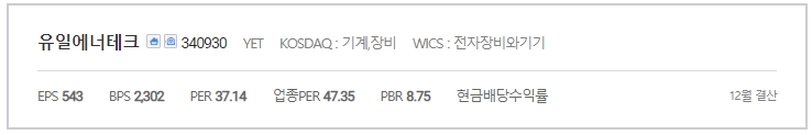 유일에너테크는 지난해 매출액 590억원, 영업이익 77억원, 당기순이익 48억원을 기록했습니다.