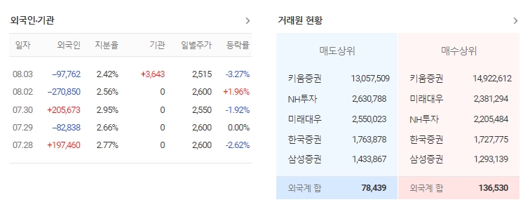 이날 거래량은 전일 대비 254.9% 급증하면서 최근 5거래일 거래량의 최고치를 넘어섰습니다. 거래원 동향은 미래에셋, NH투자 등이 매수 상위 목록에 나타나고 있습니다.