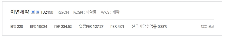 | 설립일 | 1964/11/25 (상장일: 2010/06/10) | 기업명 | 이연제약 |