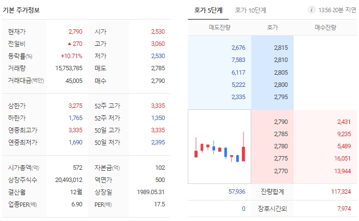 | 발행주수 | 20,493,012주 | 거래량/거래대금 | 402,436주 / 10억원 |