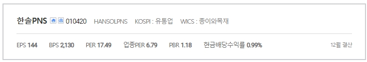 | 설립일 | 1975/02/04 (상장일: 1989/05/31) | 기업명 | 한솔PNS |