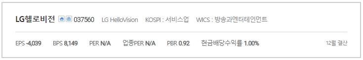 | 설립일 | 1995/04/01 (상장일: 2012/11/09) | 기업명 | LG헬로비전 |