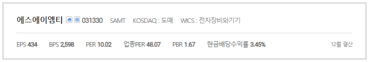 | 설립일 | 1964/11/25 (상장일: 2010/06/10) | 기업명 | 에스에이엠티 |