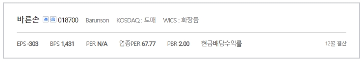| 설립일 | 1964/11/25 (상장일: 2010/06/10) | 기업명 | 바른손 |
