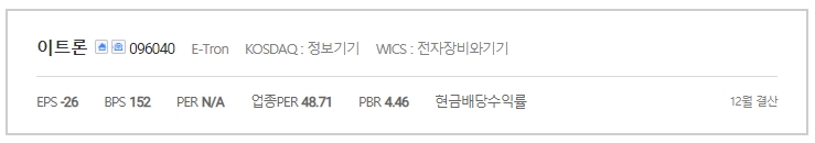 설립일 1999/11/08 (상장일: 2008/01/25) 기업명 이트론
