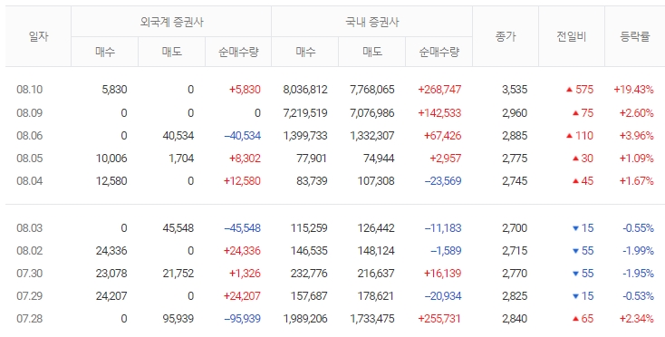 | 발행주수 | 37,842,602주 | 거래량/거래대금 | 10,262,800주 / 321억원 |