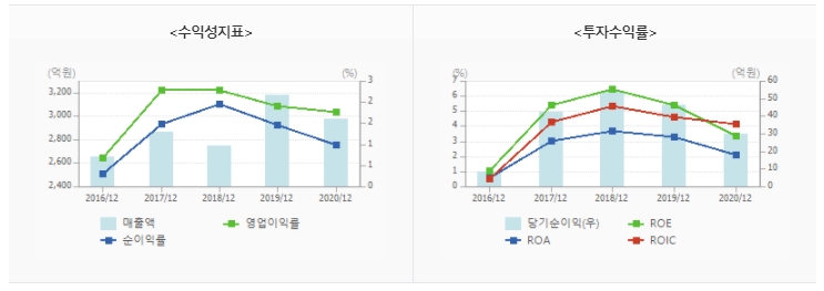 경남스틸의 2020년 매출액은 전년대비 -6.5% 줄어든 2975억원이고, 영업이익 역시 전년대비 -13.0% 줄어든 53억원을 기록했다. 이 회사의 매출액 증감률과 영업이익 증감률은 각각 코스닥 하위 37%, 하위 43%에 해당된다.