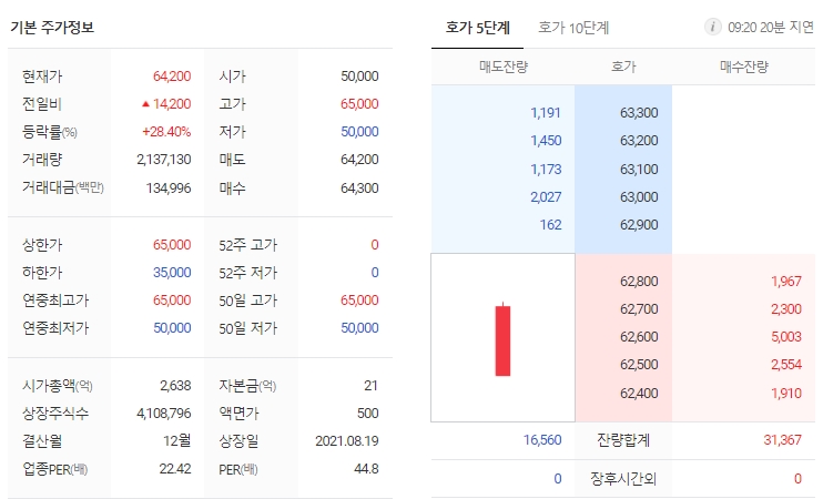 - 2021년 8월 19일 코스닥시장에 신규 상장함.