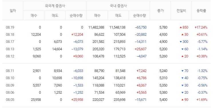 발행주수 27,811,403주 거래량/거래대금 136,030주 / 7억원