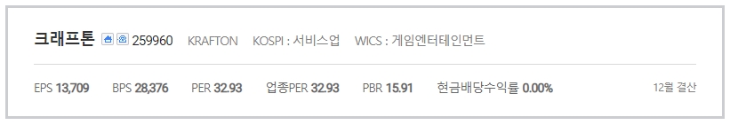 | 설립일 | 2007/03/26 (상장일: 2021/08/10) | 기업명 | 크래프톤 |