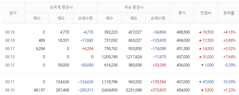 | 발행주수 | 48,898,070주 | 거래량/거래대금 | 1,168,170주 / 5,415억원 |