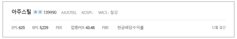 | 설립일 | 1999/10/29 (상장일: 2021/08/20) | 기업명 | 아주스틸 |
