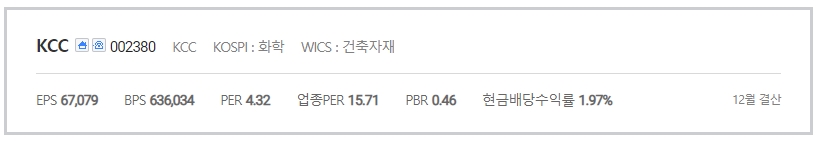 | 설립일 | 1964/11/25 (상장일: 2010/06/10) | 기업명 | KCC |