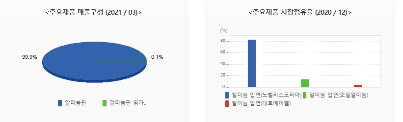 • 알루미늄 판은 장치산업으로 진입장벽이 높은 바, 동사와 노벨리스코리아㈜, ㈜대창에이티, ㈜대호에이엘 등의 기업들이 시장을 과점하고 있음.