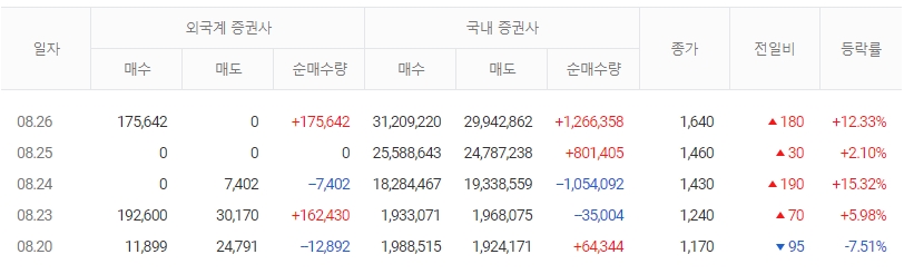 거래량/ 거래대금 34,988,200 / 540 시가총액 1,498