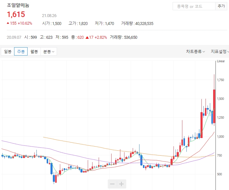 조일알미늄은 배터리용 양극박 원자재 공급량을 기존 5000t에서 4만t까지 생산량을 확대할 예정으로, 이를 위해 지난 7월 150억 원 규모의 설비 투자 계획을 밝힌 바 있습니다.