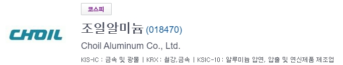 조일알미늄 시가총액은 1452억원이며, 시총순위는 코스피 714위입니다. 액면가는 1주당 500원입니다.
