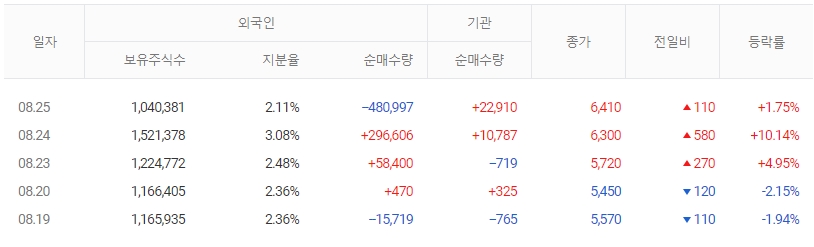 52Weeks 최고/최저 8,590 / 4,555 액면가 1,000