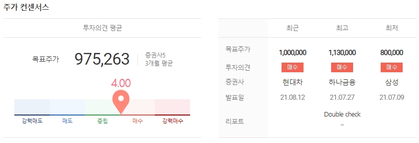 삼성SDI 2분기 실적, 3분기 예상 실적 등을 바탕으로 하여 상승 분위기를 이어갈 것이라고 판단하고 있습니다. 전기차 시장 성장 속도가 예상을 뛰어넘어 하반기에도 실적은 계속 이어질 것으로 예상해 목표주가를 기존 90만원에서 100만원으로 상향조정했습니다. 투자의견은 ‘매수’ 유지입니다.