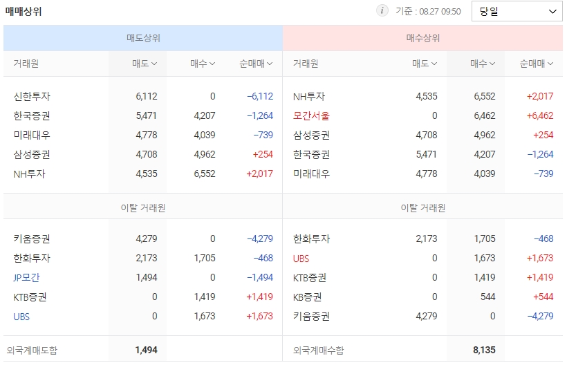 | 거래량/ 거래대금 | 217,222 / 1,663 | 시가총액 | 526,049 |