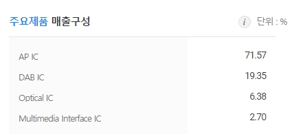 • 고부가가치 시장인 Optical IC와 Multimedia Interface IC, AP IC 등자동차용 반도체 시장을 목표로 중점 개발 및 판매 중임.
