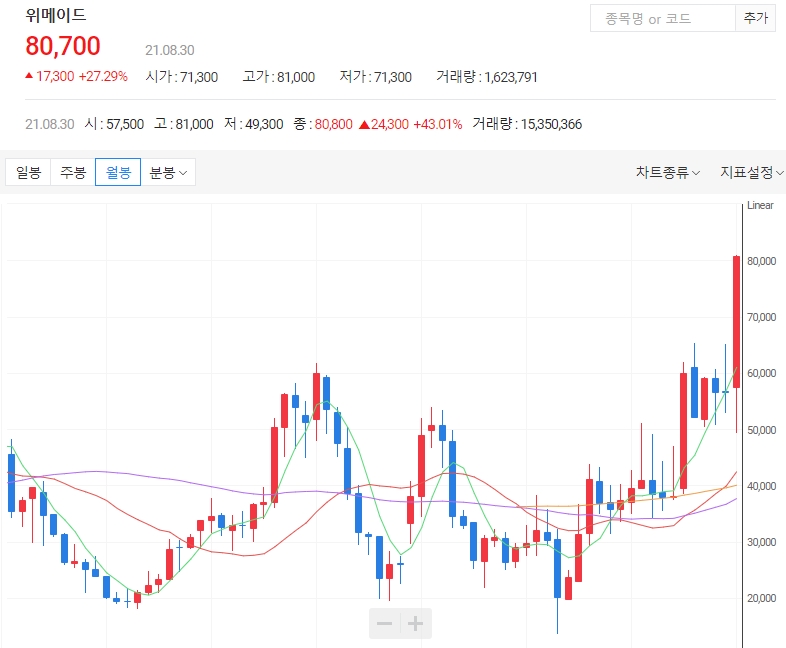 위메이드 주가가 신작 ‘미르4’ 글로벌 출시 소식이 알려진 이후 오전장 들어 강세를 보이고 있습니다. 30일 오전 11시 35분 위메이드의 주가는 전일대비 1만4700원(23.19%) 상승한 7만8100원에 거래되고 있습니다. 오늘은 위메이드 주가 전망에 대해 알아보겠습니다.