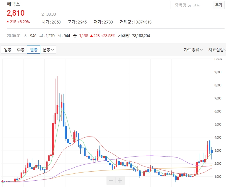 에넥스는 이재명 관련주로 엮이기도 하는데 이재명 지사의 '기본주택'공략에도 관련주로 엮이며 상승하기도 했습니다.
