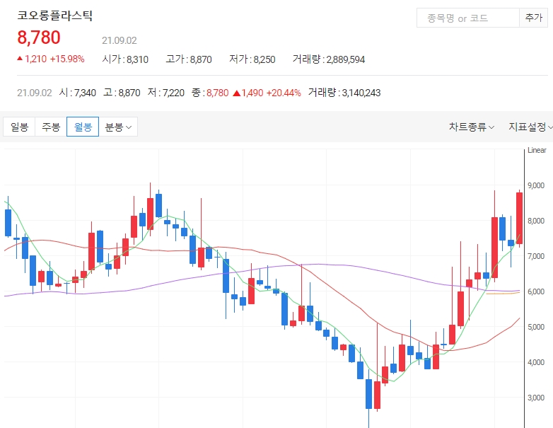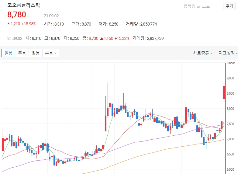 플라스틱 제조 가공 및 판매업 영위업체인 코오롱플라스틱의 주가가 상승하고 있습니다. 코오롱플라스틱은 2일 오전 9시18분 현재 전 거래일 대비 13.74%(1040원) 상승한 8610원에 거래되고 있습니다. 오늘은 코오롱플라스틱 주가 전망에 대해 알아보겠습니다.