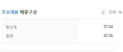 동사의 주요제품 매출 구성비율은 탈산제 57.64%, 빌렛42.36%로 구성되어 있습니다. 전체매출의 절반가량을 탈산제가 차지하고 있습니다.