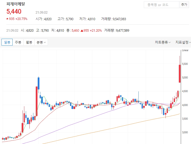 알루미늄 가격이 급등하면서 피제이메탈의 주가도 상승하는 것으로 풀이됩니다.